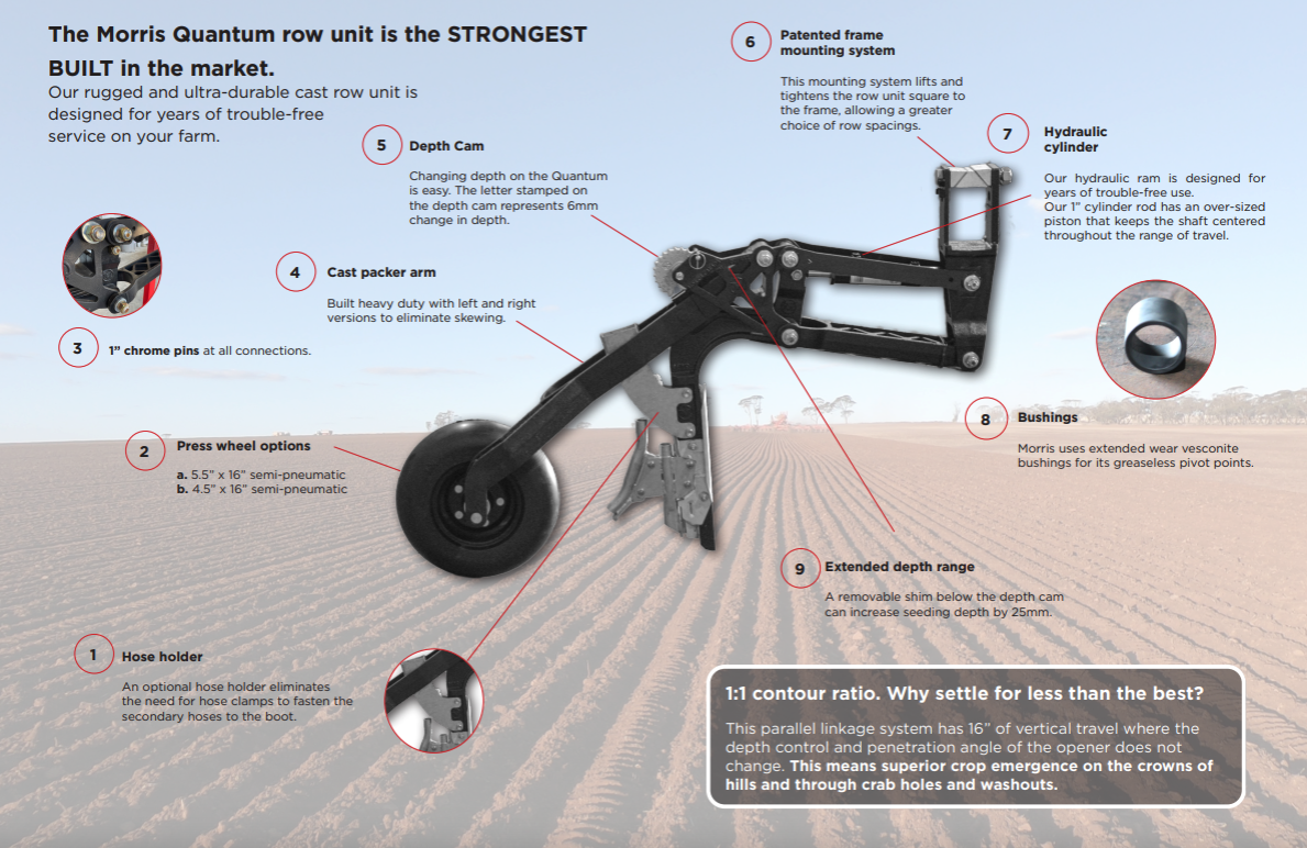 - Heavy-duty cast row unit for extended durability in tough conditions